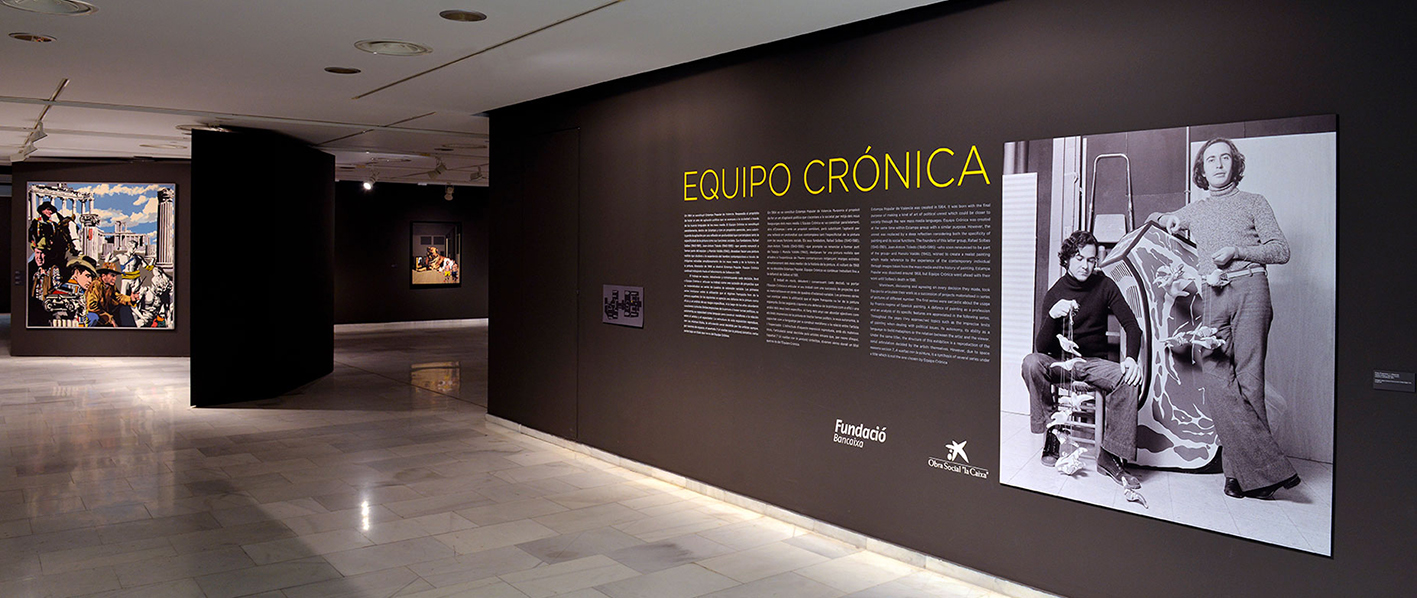 Amplia retrospectiva con más de ciento sesenta y cinco obras, la antológica más completa realizada hasta la fecha. La organización de la exposición es cronológica y por series. La presencia de varias de estas series completas permite ver la rotundidad del trabajo del Equipo Crónica, los vivos colores del Pop de los valencianos se muestran con rotundidad sobre el color oscuro y dramático de la sala.
