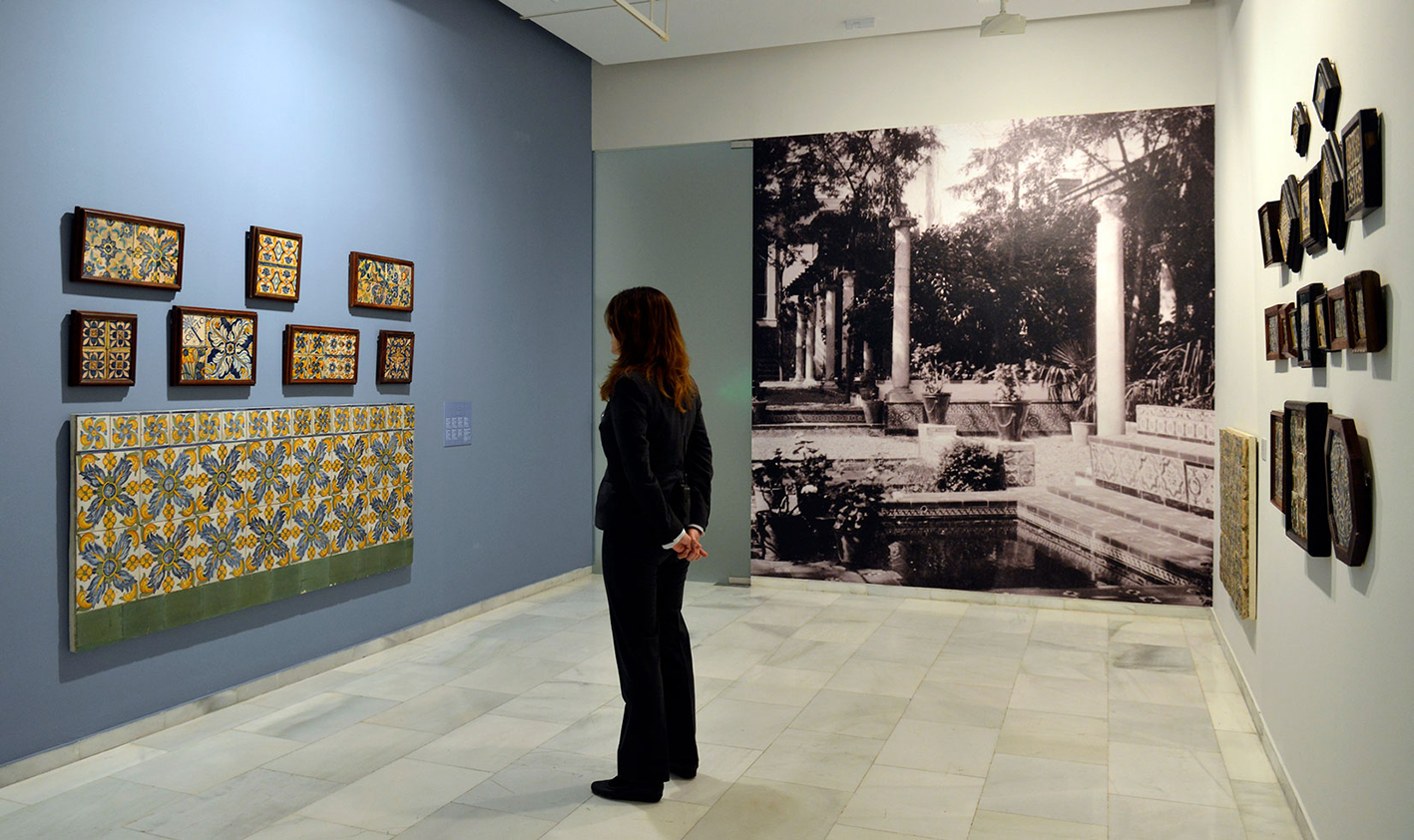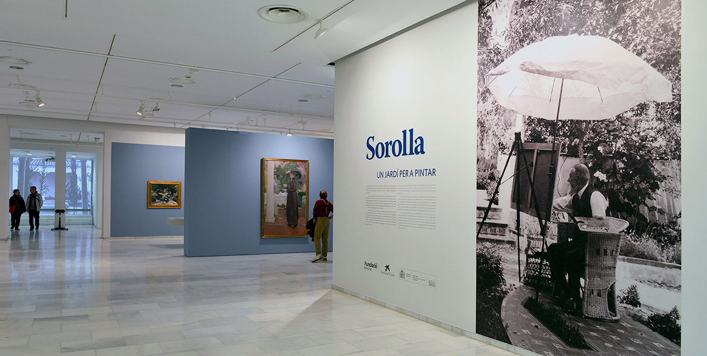 The general colour of the room, full of light, is broken up by some traces of blue on the walls, which brings dynamism to the space. The location of large images of the garden in strategic places of the rooms makes us feel that there is an opening to the outside, like a window facing the garden. The two video projections have a similar function, to give life and dynamism to two photographs of the time that merge with sketches and paintings by Sorolla