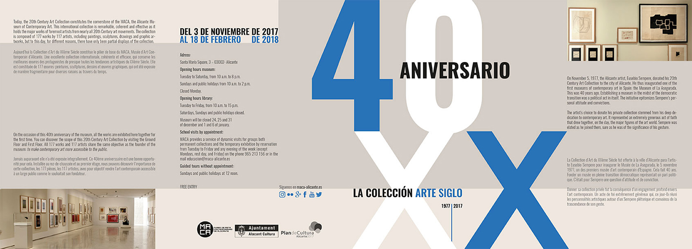 El MACA celebra el 40 aniversario de la Colección Arte Siglo XX con la exposición de todas las obras que la componen y que nunca hasta ahora se habían mostrado al completo. Compuesta por ciento setenta y siete obras de ciento diecisiete artistas y abarcando un arco temporal desde los años veinte al principio de los ochenta.