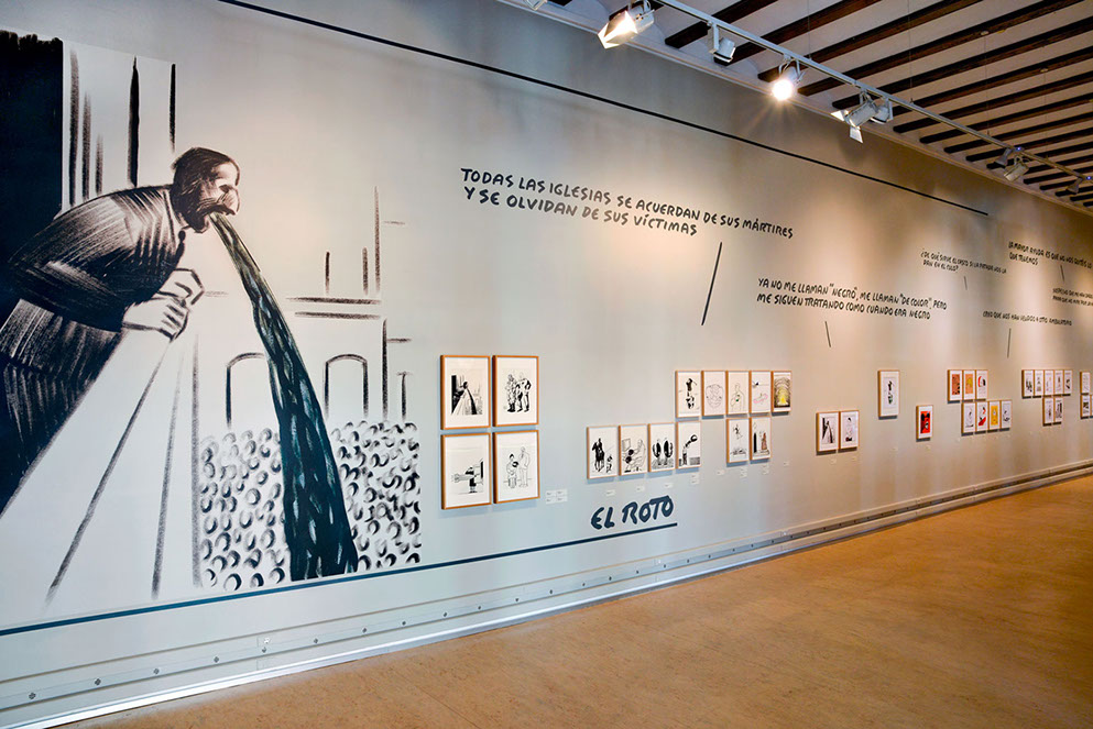 La exposición recorre toda la carrera del artista, desde sus primeros trabajos en Hermano Lobo y Triunfo como OPS hasta la actualidad, con su trabajo como pintor y El Roto.