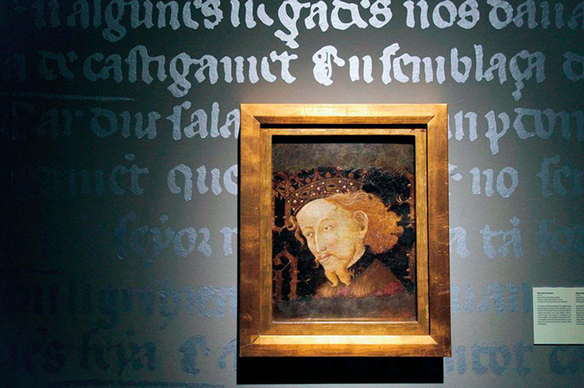 Con motivo del 800 aniversario del nacimiento del rey Jaime I, se muestra una selección de obras que representan al monarca, y los acontecimientos más significativos, como héroe y padre de la patria. Se reproducen en las paredes textos pertenecientes al "Llibre des fets", en plata sobre el color de fondo, creando un tapete gráfico perfectamente integrado que cuenta hechos relacionados con las obras próximas.