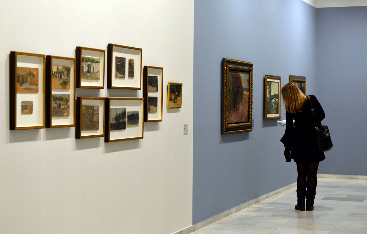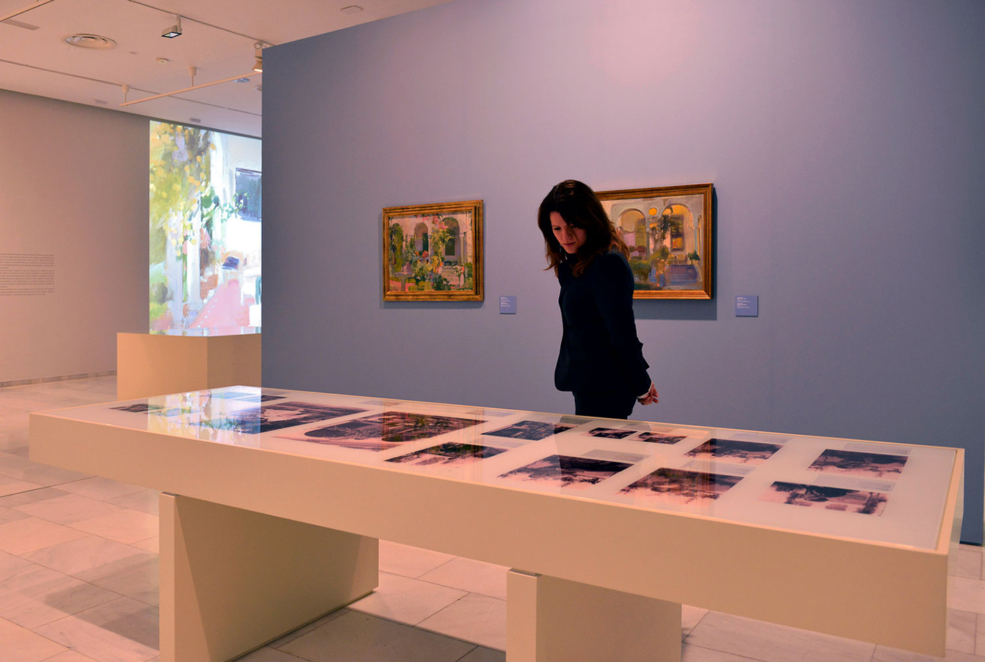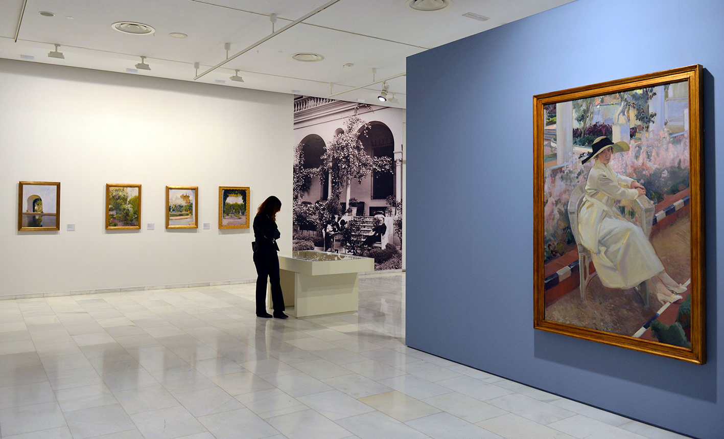 La exposición se centra en el trabajo desarrollado por Sorolla con los jardines como modelo y principalmente en el de su residencia de Madrid, actualmente el Museo Sorolla, y de donde provienen la mayor parte de las obras. Las piezas se agrupan según la disposición de las tres tipologías de jardín de la casa museo del artista.